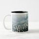 Caneca De Café Em Dois Tons Névoa da manhã acima dos campos do arroz