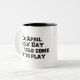 Caneca De Café Em Dois Tons No Dia da Fool de abril, os tolos saem para jogar