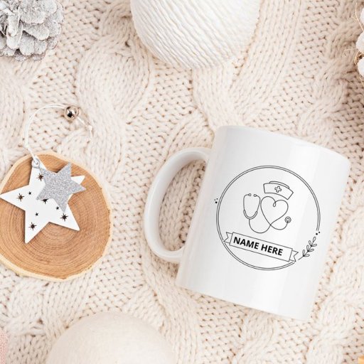 Personalized nurse mug featuring a custom name and photo. A thoughtful and practical gift for nurses, perfect for coffee or tea at home or work.