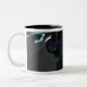 Caneca De Café Em Dois Tons O homem-ar ajusta o olho