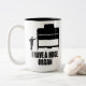 Uma silhueta de um homem que inclina-se contra um órgão ereto gigante e a frase "eu tenho um órgão enorme"