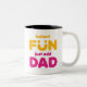 O DIVERTIMENTO imediato, apenas adiciona o PAI:) design de texto da caneca com letras amarelas e cor-de-rosa para pais do divertimento. Você pode escolher seus próprios estilo e cores da caneca.