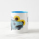 This mug features the Pale Aqua Figaro. The story that this Figaro color represents “summer” is reflected in the design, with sunflowers in the background.