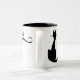 Caneca De Café Em Dois Tons Pássaro que roosting na cauda de gato