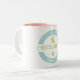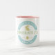 Esta caneca de café exclusiva apresenta uma etiqueta de estilo vintage com um design da Easter Bunny Chocolate Company em cores pastel. O título "Chocolate Co." é impresso no centro em uma fonte verde e suave. O título "Coelhinho de Páscoa" e o texto "Selo Oficial" são impressos em uma faixa azul pastel em uma fonte retrorada. Uma silhueta amarela de um coelho é ilustrada no topo, com um ovo amarelo correspondente na parte inferior. O dentro da caneca é um rosa macio que você pode mudar para uma cor de sua escolha.