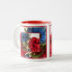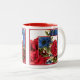 Uma caneca de dois tons com flores brancas e azuis vermelhas faz uma bebida de celebração de excelente, ou um presente especial.