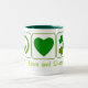 Caneca De Café Em Dois Tons Paz, amor e trevos
