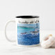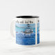 Personalize a caneca de café com dois tons modernos dos pescadores. Tripulação de pesca/Barco de Pesca que sai para um dia de trabalho no mar. Pintura original em caneca, pintura acrílica, madrugada, barco de pesca no oceano, tripulação em convés, água esmagando, Eu precisava pinçar esta cena, agora impressa em caneca, personalizar o seu texto para a sua querida. Use a FERRAMENTA EDIÇÃO na página PRODUTO para PERSONALIZAR. Artista Tanya Arseneau Nanniesfineart