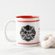 Level up your drinking experience with this Personalized Firefighter Dad Name Thin Red Line Two-Tone Coffee Mug featuring the Thin Red Line in Maltese Cross shape. It also features a thin red line along the cup mouth and black and white US flag. You can customize name, badge number or station, and rank.
