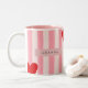 Caneca De Café Em Dois Tons Personalized Playful Red Heart & Pink Stripe