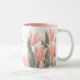 Caneca De Café Em Dois Tons Pintura de Tulipas Monogramas Peach da Família Ele