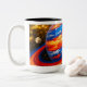 Caneca De Café Em Dois Tons Planeta Vermelho e Azul com Anéis
