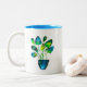 Caneca De Café Em Dois Tons Plantas aquáticas de arte verde e abstrato azul