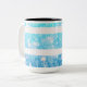 Lindas e cintilantes listras azuis de neve fazem desta caneca de café um presente de excelente feriado.