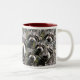 O racoon selvagem com seu nariz travou na cerca. Olha como chanfra figura para fora como sair.