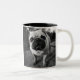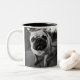 Fotografia preto e branco de um pug muito considerável com os olhos marrons brilhantes grandes. Grande presente para o senhor mesmo ou o amante do pug em sua vida.