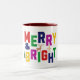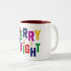 Caneca De Café Em Dois Tons Reindeer feliz e pinheiro brilhante Snowman