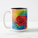 Caneca De Café Em Dois Tons Rosa vermelha no fundo Abstrato do arco-íris