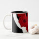 CANECA DE CAFÉ EM DOIS TONS ROSAS VERMELHAS NO IMPRESSÃO PRETO E BRANCO DA