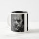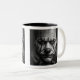 Uma pintura digital em tons de cinza de um palhaço triste. Mug de dois tons, 11 oz