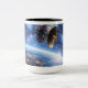Caneca De Café Em Dois Tons Satélite Sobre o Planeta