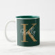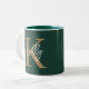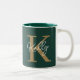 Caneca De Café Em Dois Tons Script Dourado Monograma do Emerald Green moderno
