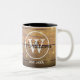 Caneca De Café Em Dois Tons Script Elegante De Madeira Rústica Monograma Perso
