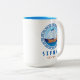 Sifnos, caneca de café de duas tonalidades Grécia com um design de um antigo navio grego e uma letra de estilo grego. Esta Grécia da antiga nave design tem a chave grega em um design de círculo com o mar e o céu. Este design de estilo grego faz desta caneca um presente ou lembrança ideal ou tomar café enquanto você está de férias em Sifnos.