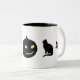 Uma caneca feita para a meia-noite de cacau e histórias de fantasmas — encantadoramente assustadora com silhuetas preto-em-branco que sussurram "chic de bruxaria".