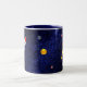 Caneca De Café Em Dois Tons Sol, planeta Terra e foguete na galáxia