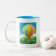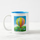 Artista: Paul Sharp | Um menino e uma menina voando num balão de ar quente sobre uma fazenda