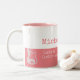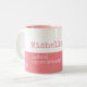 Uma xícara de café cor-de-rosa e branca feminina personalizada com nome e profissão