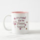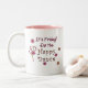 Um flamengo cor-de-rosa dança a dança feliz na parte dianteira e para trás desta caneca branca.