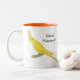 Esta caneca inclui uma alegre ave amarela e uma declaração de que "Todos os dias é um bom dia". Mantenha esse sentimento, ou personalize os dois sentimentos com seu próprio sentimento, nome, etc. A dentro da caneca é uma cor laranja coordenadora.
