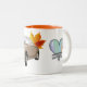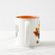 This mug features the Topaz Mist Figaro. The story that this Figaro color represents “autumn” is reflected in the design, with autumn leaves in the background.
