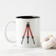 Esta caneca é perfeita para qualquer um que esteja sempre em movimento. Ele apresenta uma design divertida e peculiar com um tripé e uma citação.
