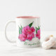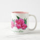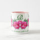 Tulipas cor-de-rosa lindas, com arco e coração cor-de-rosa, monograma e também texto, se quiserem. Um presente de excelente para alguém que você ama, muito adequado para a mãe, vovó, ou qualquer mulher especial em sua vida. Personalize a caneca para criar seu presente especial.