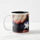Caneca De Café Em Dois Tons Um soldado segura bandeira dos Estados Unidos