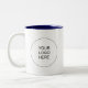 Custom Trendy Elegant Modern Simple Template Upload Your Business Logo Classic Two-Tone Mug 11 oz Navy Blue and White Coffee Mug.
