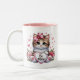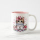 This ceramic coffee mug is shown with a cute Valentine kitten hearts print.