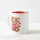 This ceramic coffee mug is shown with a cute Valentine teddy bear love greeting hearts print.