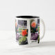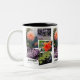 A obra de arte original dessa Mug é um grupo de fotografias originais de MaeFlowers de flores laranja, flores de lavanda e folhas tropicais. As cores vão de pastéis macios a brilhantes, com uma variedade de verdes em sombra e luz brilhante. Na caneca diz "VIVENDO VERDE com laranja e lavanda" em um canto da design.