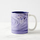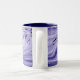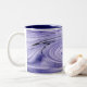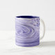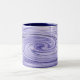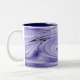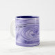 Esta caneca apresenta um desenho abstrato girando em tons de azul e roxo que se move da esquerda para a direita. O padrão parece um redemoinho.