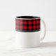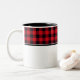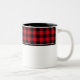 Esta caneca de café cerâmica é mostrada com um impressão de xadrez de búfalo preto e vermelho. Personalize este item ou comprar como está. Imagem do stock freepik.com all-free-download.com