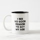 Quem disse que você tem que agir da sua idade? Esta caneca engraçada traz uma atitude ousada e boas vibrações para o seu conserto diário de cafeína. Perfeito para os jovens no coração com uma raia rebelde!