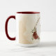 Linda caneca de café em tom terroso com flores bege dourado e folhas verdes. PARA MAIS PRODUTOS SEMELHANTES clique na coleção acima ou entre em contato