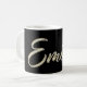 Eine sehr schöne edle personalisierte Tasse / Kaffeetasse / Teetasse im whitegold Lettering Look auf schwarz für Emilio.