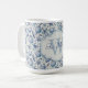 Aproveite suas bebidas quentes favoritas com estilo com esta caneca de café com Enfeites de natal de Toile Azul Monograma Personalizado. Apresentando um padrão inspirado em eterno com ornamentos elegantes de feriado e seu monograma personalizado, esta caneca faz um acréscimo clássico à sua coleção de bebidas sazonais. Perfeito como presente festivo ou para boas manhãs de Natal.