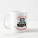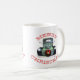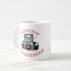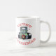 Aqui está uma ideia diferente de presente para qualquer um que ama caminhões clássicos e veículos antigos. Uma foto de um caminhão coletor vintage de 1947 foi computada em uma imagem falsa do estilo aquarela - uma coroa de Natal com arco vermelho e bolas vermelhas adicionadas à grelha. O Feliz Natal é soletrado acima e abaixo da design do caminhão e está cheio de listras vermelhas e brancas de cana-de-vela. A design é mostrada em ambos os lados das xícaras como mais visível para as pessoas direita e esquerda.