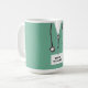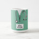 Apreciação de enfermeiros ou formatura em uma escola de enfermagem guardam a caneca de presente com esfregões hospitalares. Editar texto para adicionar nome.